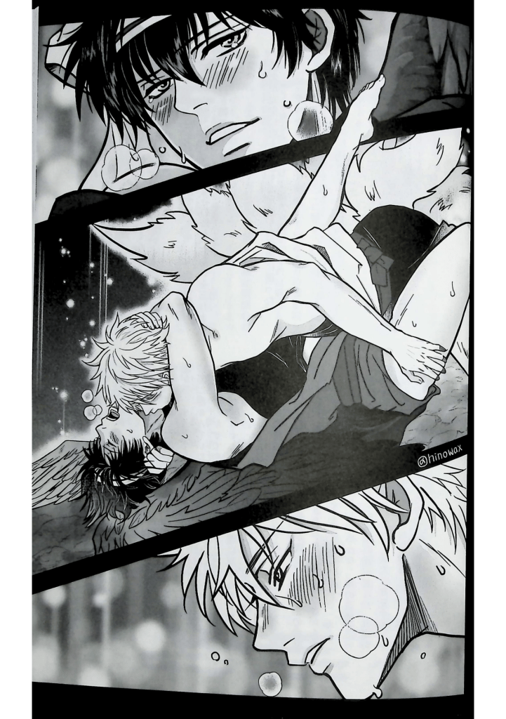 或许是因为好奇自己突然变轻的身体,鸦天狗难以置信地坐起身环视自己的身体,银时怀里的鸦天狗第一次垂下眉梢笑了,那声音和柔和的表情瞬间吸引了银时。