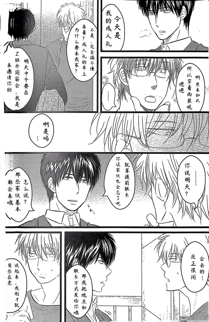 银时渐渐觉得和银一直这么生活下去也不错,但银出去后一直没回来,他很担心,四处寻找也不见踪影,这才又想起这孩子只是他偶然捡到的而已,他只是失去了记忆。有可能是他恢复了记忆,回自己原本住的地方去了,如果是这样就好了,但麻烦的是如果他去了自己布下的结界之外,然后被外敌袭击,被掳走的话就糟糕了。