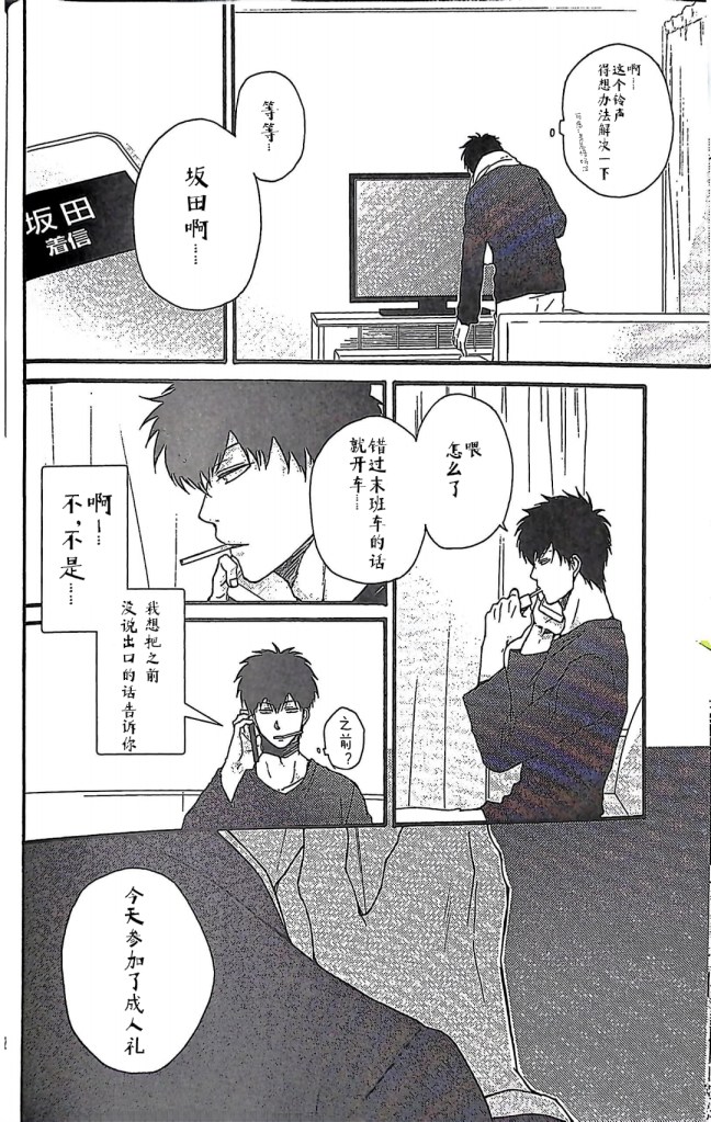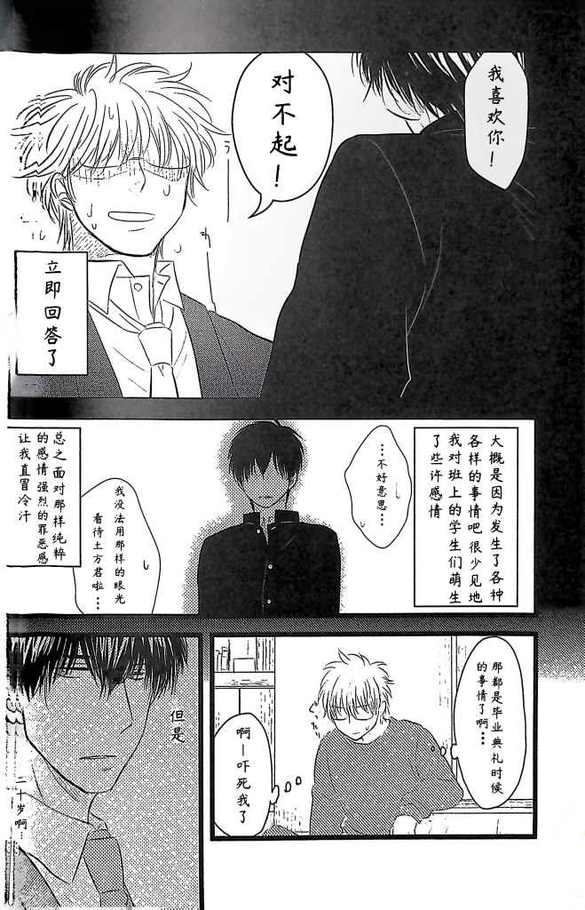 ——这家伙要死了啊。银时无奈地咬着下唇,但既然遇到了,就没法视而不见。他抱着男子,用手指腹擦去了他沾满煤灰和灰尘的脸。意外的出现了一张端正的脸,深蓝的眼睛眨了几下,再次凝视着银时的瞳孔。那双眼睛瞬间夺走了银时的心,第一次见这个妖怪,就仿佛看到了即将燃烧殆尽的生命之火的光辉,虽然眼睛里带着深深的悲伤,但到最后也要保持矜持的凛然,这是银时迄今为止遇到的所有事物中最漂亮的。